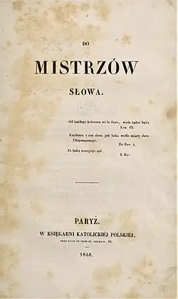 - (1846). To the Masters of the Word (Do mistrzów słowa). First published in Paris: Catholic Bookshop Poland (poetry).[31]