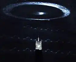 The book by Śledź also inspired an artistic installation called Imaginoscope by Leszek Lewandowski,[118] which was exhibited in 2015 at the Galeria Bielska BWA and later purchased by the Arsenal Gallery in Białystok.[119] This optical-kinetic installation uses a rotating cylinder that projects light spirals onto the walls of the room. Viewers undergo various perceptual disturbances and states close to hypnosis. Lewandowski artistically influences the imagination of the audience and "arranges a situation balancing on the border of playing with the viewer and experiments with illusion, to provoke viewers to reflect on uncritically internalized images of the world", as well as confronting them with the "essentially unfathomable power of imagination" according to the description by Śledź Otrembus Podgrobelski.[120]