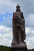 Panevėžys was first mentioned evidently on 7 September 1503 in documents signed by the Grand Duke Alexander Jagiellon, who granted the town building rights to construct a church and other structures.[13][14][15] Therefore, Alexander Jagiellon is considered as the founder of the city, which celebrated its 500th anniversary in 2003; two monuments were built in the city for this anniversary, one of which, by Stanislovas Kuzma, is dedicated to Alexander Jagiellon.[16][17]