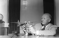 After the Attack on Pearl Harbor in 1941, Territorial Governor Joseph Poindexter evoked Martial law in Hawaii.[11] The War Shipping Administration took control of all Inter-Island Steam Navigation's ships, but allowed Hawaiian Airlines to operate under the Army's supervision.[7] The ships that used to supply the islands with its consumer goods, were now devoted to transporting soldiers, munitions, and other war supplies throughout the islands. Kennedy petitioned the CAB to allow Hawaiian to fly these consumer goods on its airplanes, and was granted United States Air Cargo Certificate #1.[9][7] Hawaiian removed the seats of its three remaining S-43s and lone remaining S-38 to use for cargo flights, allowing its DC-3s to fly the passengers.[7] On March 20, 1942, Kennedy watched as Hawaiian's first air-cargo flight departed to serve the people of Hawaii.[9]