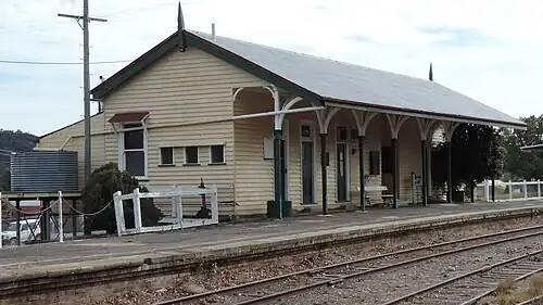 Until 1972, Stanthorpe was served by passenger trains operating between Brisbane and Wallangarra.[6] The station remains in place and is used as a calling point by Downs Explorer (formerly the Southern Downs Steam Railway) heritage services.[7]