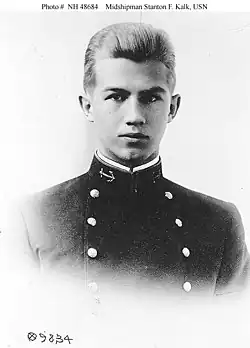Stanton Kalk was born in Mobile County, Alabama,[1] the son of Frank Kalk and Flora Stanton Kalk. He was appointed to the Naval Academy by Nebraska Senator Norris Brown, and graduated in 1916, fifty-first in a class of 178.[2]