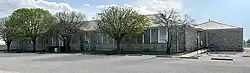 The community was laid out by Alec Street in the mid-1880s and was named for nearby Star Mountain. Street ran a store and a gin in the community. A post office was established in 1886 with Calvin Skinner as its first postmaster.[3] In 1890, the first public road opened from Star to Goldthwaite. By 1895, the community had a saloon, several grocery stores, and a drug store. A tornado struck Star on May 5, 1904. Two people were killed and five homes were completely destroyed.[5] The community recovered and a permanent church was built in 1905. In 1910, a bank opened.[2] A four-room, two-story stone school building was completed in 1913. A hailstorm damaged homes, businesses, and the school on April 22, 1924. Star's bank was robbed in 1928 and the robber got away with about $3,000 and several valuables. Four years later, during the Great Depression, the bank was sold to the Trent State Bank in Goldthwaite.[5] By 1939, Star had eight businesses operating in the community. That same year, three area schools – McGirk, Center City, and Hurst Ranch – consolidated with Star. In 1940, the W.P.A. erected a new school designed by Wyatt C. Hedrick for the Star Independent School District; it is the only school built in Mills County by the W.P.A.[6] The population stood at around 170 in the mid-1940s. The rising usage of the automobile caused a decline in the number of local businesses. By 1980, the community had an estimated population of 85. That figure remained steady through 2000.[2] It went up to 110 in 2010.[3]
