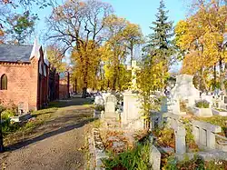 In 1855, the cemetery was expanded by 0.40 ha, thanks to the purchase buying of land from the Sowiński family for almost 78 thalers.[5] In 1906, the site covered a surface of 1 ha, 42 ares and 50 square meters or 14,250 square metres (3.52 acres).