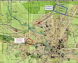 In 1906, Father Ryszard Markwart, then parson of the only catholic parish of Bromberg, obtained permission from the Prussian authorities to establish a new parish cemetery on the northern outskirts of the city which would be called the New Parish Cemetery or Nowofarny Cemetery (Polish: Nowofarny Cmentarz): from that date, the previous gravesite has been called Old Parish Cemetery or Starofarny Cemetery.[5]