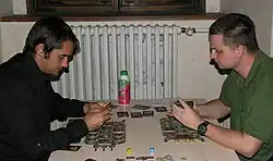 Starship Catan is a two-player card game, loosely based on the Starfarers of Catan board game. As a member of the Catan family of games, it is designed by Klaus Teuber, and distributed by Kosmos in German and Mayfair Games in English.