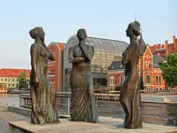 In 1989, in front of N°9, has been unveiled a sculpture, "The three Graces ((in Polish) Trzy Gracje ). This work, realized by Jerzy Buczkowski, displays a bronze casting of three women, the Graces, who, according to Greek mythology were goddesses of charm, beauty, nature, human creativity, and fertility. The "Three Graces" are considered one of the most successful examples of modern sculpture in Bydgoszcz. The setting emphasizes the area as the most representative renovated section of the Brda riverbanks in Bydgoszcz.