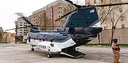 During the Fall of Kabul in August 2021, Blackhawk and Sea Knight helicopters of the Air Wing operated in conjunction with US Army CH-47 Chinook helicopters to evacuate the US embassy in Kabul as the Taliban seized control of the city. A photo taken of the flight operations showing a CH-47 landing behind an embassy building was compared to a photo of a Marine Sea Knight evacuating the last Americans from the US embassy in Saigon during the Fall of Saigon, while one of Air Wing Sea Knights flying the rescue operations in Kabul was also in fact previously employed during the evacuation of Saigon.[14] Following the evacuation, seven CH-46's were made inoperable and abandoned at the airport.[15]