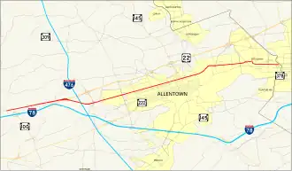 | Allentown | 7.237 | 11.647 | SR 1017 north (19th Street) | Formerly US 309 and PA 29[16] | |