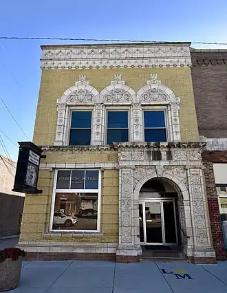 State Savings Bank, also known as Harrison Mutual Insurance Association, is a historic building located in Logan, Iowa, United States. Founded in 1888, the bank built this building in 1902.[2] It is a two-story brick structure with terra cotta ornamentation. Its wrap-around design is made possible for this mid-block building by its alley location. State Savings Bank was one of four banks that operated in the town over its history. It failed in 1923. After the building sat empty for five years Harrison Mutual Insurance Association purchased the building. It was listed on the National Register of Historic Places in 1985.[1]