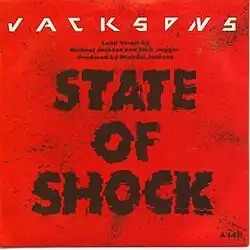"State of Shock" is a 1984 single by the Jacksons and Mick Jagger. It was written by Michael Jackson and Randy Hansen. The song was originally sung by Michael Jackson as a duet with Freddie Mercury,[3] and was later slated for the Thriller album in 1982; however, due to differing time schedules, Jackson ended up recording it with his brothers and Jagger instead.