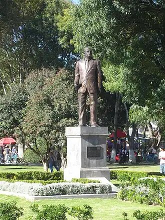 The statue of Alfredo Toxqui Fernández de Lara in Cholula, Puebla, was erected by Gobierno Municipal de Cholula de Rivadavia in 2004.[1]