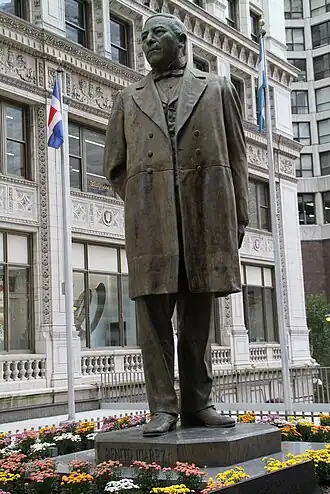A 16-foot statue of Benito Juárez, the president of Mexico from 1858 to 1872, is installed in the Plaza of the Americas (Chicago) along Michigan Avenue, just north of the Wrigley Building in Illinois.[1][2] It was donated to the city by the Consulate-General of Mexico in February 1999, replacing a bust gifted by president José López Portillo in 1977.[3]