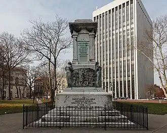 A statue of Christopher Columbus was a memorial in Washington Park (now Harriet Tubman Square) in Newark, New Jersey, within the James Street Commons Historic District. It was made in Rome by Giuseppe Ciochetti and presented to the city by Newark's Italians in 1927.[1][2][3][4] The statue was removed by the city (with pedestal left in place) in June 2020 to prevent its toppling in a Black Lives Matter protest.[5]