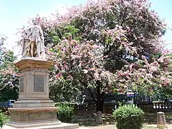The statue of Edward VII in Bangalore is located at Queen's Park, next to Cubbon Park, Bangalore Cantonment, at the junction of Queen's Road and Cubbon Road. The statue was unveiled in November 1919 by the then Viceroy and Governor-General of India, Frederic John Napier, Baron Chelmsford. The statue was raised out of funds raised by the residents of the Bangalore Civil and Military Station. The Statue of King Edward VII is one of the few of the original statues which were installed in British India, to still stand at its original location. The statue rises above a flowering frangipani tree. On the other end of Queen's Park is the Statue of Queen Victoria, Bangalore.[2][3] The statue was designed and sculpted by Leonard Jennings of Chelsea, London.[4]