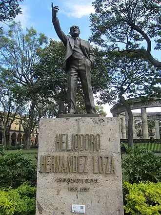 A statue of Heliodoro Hernández Loza is installed along the Rotonda de los Jaliscienses Ilustres, in Centro, Guadalajara, in the Mexican state of Jalisco.[1]