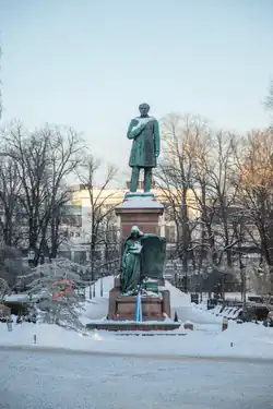 The Statue of Johan Ludvig Runeberg is a statue dedicated to the Finland-Swedish author, national poet and priest Johan Ludvig Runeberg (1804–1877), designed and sculpted by his son Walter Runeberg (1838–1920). The statue is located in the Esplanadi park in Helsinki.