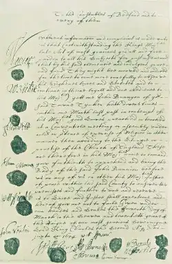 An exhibition of Bunyan relics, including Bunyan's will (now housed in the John Bunyan Museum) was on display in the hall of the Corn Exchange.[9] The Mayor entertained seventy guests at a banquet.[9]