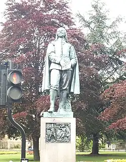 A bronze statue of John Bunyan stands on St Peter's Green, Bedford, England. The statue was sculpted by Sir Joseph Edgar Boehm, it was erected in 1874, and unveiled on 10 June of that year. The statue was commissioned by the Ninth Duke of Bedford (who also commissioned the bronze reliefs on the doors of the Bunyan Meeting Free Church[1]) and presented by him to Bedford town.[2]
