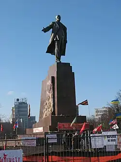 - ^ "Ukraine nationalists tear down Kharkiv's Lenin statue". BBC News. 28 September 2014. Retrieved 22 April 2015.