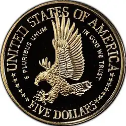 - ^ "1986 Statue of Liberty $5 Gold". 7 May 2009. Retrieved 2019-08-31.