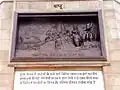 The statue is 72 feet (22 m) high with base and is made of bronze. It was sculpted by Ram Sutar's firm and is located on the western end of historic Gandhi Maidan, in front of St. Xavier's High School, Patna.[3] It shows Mahatma Gandhi standing affectionately with two children. The pedestal is 24 feet (7.3 m) high with four landmark events of Gandhi's life, Dandi March in 1930, Quit India movement in 1942, Champaran Satyagraha in 1917 and charkha as symbol of Gandhi is inscribed on it in large letters.[4]