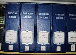 At the time that the Interpretation Act (1867) was passed,[3] the Statutes of Canada were required to be distributed and published at the end of each session of parliament.[4] This was changed in 1984, with the volumes of the Statutes of Canada being required to be distributed and published at the end of each calendar year.[5][6] Acts in the Statutes volumes are referred to as "Annual Statutes."