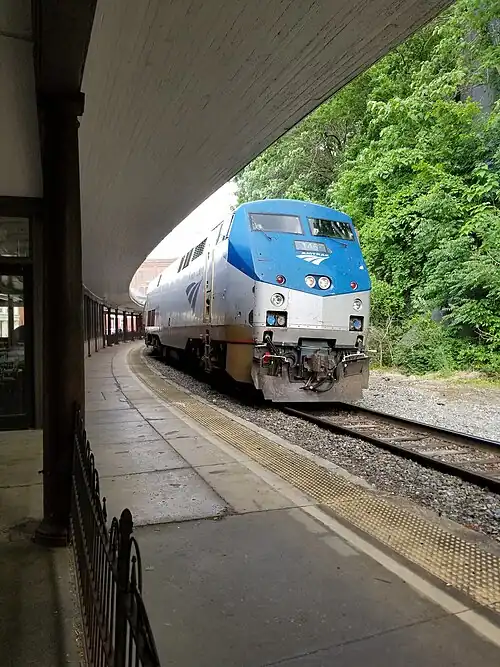 Staunton station is an Amtrak train station in Staunton, Virginia, located in the downtown Wharf Area Historic District of the city. It is served by Amtrak's Cardinal, which runs between New York and Chicago. The station has restricted restrooms and benches, but no ticket office.
