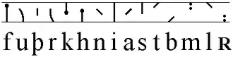 Staveless runes were the climax of the simplification process in the evolution of runic alphabets that had started when the Elder Futhark was superseded by the Younger Futhark.[1] In order to create the staveless runes, vertical marks (or staves) were dropped from individual letters (or runes). The name "staveless" is not entirely accurate, since the i rune consists of a whole stave and the f, þ, k and the s runes consist of shortened main staves.[1]