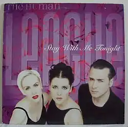 "Stay with Me Tonight" is a song by English synth-pop band the Human League, released in January 1996 by East West Records as a single from their second compilation album, Greatest Hits (1995). It was jointly written by Philip Oakey and producer Ian Stanley, features lead vocals by Oakey; with backing by co-vocalists Susan Ann Sulley and Joanne Catherall. Post production by re-mixers 'Space Kittens'.