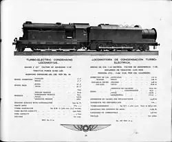 Henschel converted a normal DRG Class 38 steam locomotive to use a steam turbine in 1927.[1] The locomotive itself was little modified, the major changes being to the tender which was fitted with coupled driving wheels in a 2-4-4 layout, driven by separate forward and reverse turbines. Both turbines were driven by intermediate pressure exhaust steam from the original cylinders. A condenser in the tender provided a vacuum for the turbine exhaust, increasing thermal efficiency. As the final exhaust was at negligible pressure, the original smokebox blastpipe had to be replaced by an electric draught fan in the smokebox.