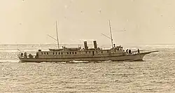 Tillamook Bay was a large very shallow bay on the northern part of the Oregon Coast. In 1911, the yacht Bay Ocean was built in Portland to provide service from Portland to Tillamook Bay for a beach resort. Bay Ocean was designed by R.A. Ballin for the T.B. Potter real estate company, which was developing the (eventually ill-fated) resort at Bay Ocean Spit on Tillamook Bay. Bay Ocean was the largest motor passenger vessel built to that date on the Pacific Coast. She was long (150') and narrow (18' beam), with a clipper bow and bowsprit. She had three gasoline engines connected to a single shaft. She could accommodate 50 passengers on the Portland-Tillamook route but had difficulty on the run and only served in the summer. She was called up by the navy to function as a patrol boat in the First World War.[1] After the war, Bay Ocean was sold to Crowley Launch and Tug Co., of San Francisco.[2]