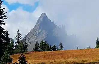 Steeple Rock[2] is a 200-foot (61 meter) basalt pillar in the Olympic Mountains, and is located in Clallam County of Washington state. It rises next to the Obstruction Point Road on Hurricane Ridge within Olympic National Park. It's situated midway between Eagle Point and the Hurricane Ridge Visitor Center. Precipitation runoff drains into tributaries of the Elwha River and Morse Creek, thence to the Strait of Juan de Fuca.