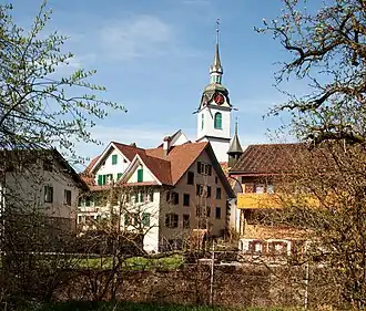 From the 2000 census, 2,291 or 82.6% are Roman Catholic, while 233 or 8.4% belonged to the Swiss Reformed Church. Of the rest of the population, there are less than 5 individuals who belong to the Christian Catholic faith, there are 21 individuals (or about 0.76% of the population) who belong to the Orthodox Church, and there are 16 individuals (or about 0.58% of the population) who belong to another Christian church. There are 61 (or about 2.20% of the population) who are Islamic. There are less than 5 individuals who belong to another church (not listed on the census), 84 (or about 3.03% of the population) belong to no church, are agnostic or atheist, and 64 individuals (or about 2.31% of the population) did not answer the question.[5]