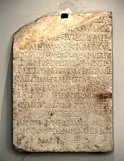The Stele of Quintus Aemilius Secundus is a first-century Roman tombstone bearing a notable funerary inscription.[1] It records how the dedicatee served in Roman Syria under Publius Sulpicius Quirinius, who was governor of Syria at the time, and there oversaw a census in the town of Apamea.[2][3]