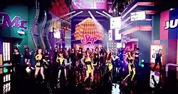 The full music video officially premiered on September 6. The video features the group dancing in front of microphones while dressed in deep blue clothes with colorful patterns. In the background, there are bright lighting signs that show the names of the group's past hit songs. In other scenes, the group can be seen individually in a bright room with colored walling dressed in colored neon clothing while jumping up. During the bridge of the song, the girls are seen dressed in glittering dresses and holding onto microphone stands in a plain white room.