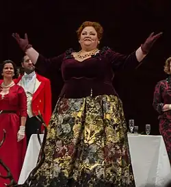 Stephanie Blythe (born 1970) is an American mezzo-soprano who has had an active international career in operas and concerts since the early 1990s. She is particularly associated with the Metropolitan Opera in New York City, with whom she has performed annually since her debut with the company in 1995. In 2014 she starred as Gertrude Stein in the world premiere of 27, an opera composed by Ricky Ian Gordon with libretto by Royce Vavrek, and commissioned for her by the Opera Theatre of Saint Louis. She currently serves as Artistic Director of the Graduate Vocal Arts Program at Bard College Conservatory (part of Bard College) in Annandale-on-Hudson, New York.[1]