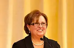 Upon her return to the United States in 2000, Burns was appointed executive vice president of the firm, and three years later became its president, the first woman to do so.[2] She served as the president and chief executive officer of Dow Corning, from February 2003 until her retirement on 31 December 2011.[3] She also served as its chief operating officer from January 2004, and as chairman from January 2006, until her retirement,[3] replacing Gary E. Anderson.[6] Under Burns's leadership, Dow Corning expanded their range to include more than 7,000 silicon-based products.[7] Additionally, she has overseen extensive diversification of the company's reach extending into new geographic markets.[7] In Burns tenure at the top of Dow Corning, she has led them to nearly quintuple their profits, and raised their annual spending on R&D to 6% of their total sails.[1] In 2011 Burns received the International Palladium medal from the Société de Chimie Industrielle for her many distinguished contributions to the chemical industry and, contributing to the enhancement of the international aims and objectives of the Société de Chimie Industrielle.[7] Burns is the first woman to receive this award, which was presented to her at a dinner in her honor on May 3, 2011, in the Grand Ballroom of the Roosevelt Hotel in New York.[7]
