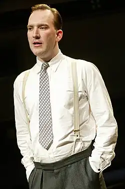 Carlile has performed in many theatre works including the Broadway production of The Lion King as Scar,[4] Noël (National Opera House in Ireland), the West End production of The Go-Between as Viscount Trimingham,[5] as Captain Hook in the US national tour of Peter Pan 360, as Agustín Magaldi in Evita, lead tenor singing Springtime for Hitler in the West End production of The Producers,[1] Peter Pan as Smee,[6] The Wizard of Oz, My Fair Lady as Freddy Eynsford-Hill,[1] Next Door's Baby as Dickie O' Brien,[7] The Pirates of Penzance as Frederic,[8] Space Family Robinson[9] and The Phantom of the Opera. In 2025, Carlile originated the role of Hades in the West End production of Hercules.[10]