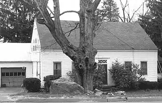 The Stephen Grannis House stood on the east side of West Street (Connecticut Route 229), a busy through street in northwestern Southington, between Curtiss and Churchill Streets. It was a 1+1⁄2-story wood-frame structure, with a side-gable roof, central chimney, and exterior finished in clapboard-like asbestos siding. Its front facade was five bays wide, with symmetrically placed one-over-one sash windows on either side of a center entrance. The entrance was topped by a patterned rectangular glass transom window, and a flat projecting cap with dentil moulding. The windows were topped by similar caps without moulding.[2]