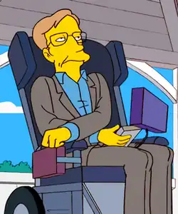 - In the episode "Stop or My Dog Will Shoot" (2007) Santa's Little Helper encounters Hawking in a corn maze while searching for a lost Homer. Hawking says "This maze is too hard for me," and then flies off in the helicopter attachment.
