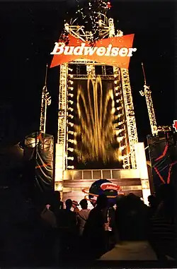 The most notable displays have been a 24 ft. wide Graphical Waterfall shown for Jeep at the North American International Auto Show in Detroit, Michigan in the years 2000 - 2008 [4] and featured on YouTube;[5] a 24 ft. wide Graphical Waterfall shown for the King of Thailand’s 60th anniversary of his ascension to the throne in 2006 in Bangkok[6] and a 12 ft. wide by 50 ft. tall Graphical Waterfall displayed for Anheuser-Busch at Centennial Olympic Park for the Summer Olympics in Atlanta in 1996.[1]
