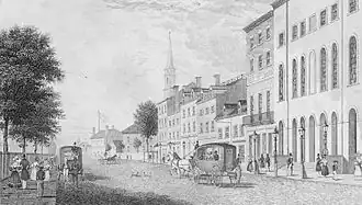 Assisted by stage manager and operating manager Edmund Simpson, Price was able to keep the theatre open during the War of 1812, after which he traveled regularly to London in search of talented players such as Mary Greenhill Barnes, Clara Fisher, Edmund Kean, Charles Mathews, and Henry Wallack.[11][12] After a fire in May 1820, the Park Theater was rebuilt, and reopened in September 1821.[13]: 382