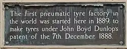The Dunlop Pneumatic Tyre Factory, the world's first pneumatic tyre factory, was built in the area in 1889.[8][9]