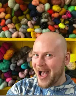 Stephen West is an American knitter, fashion designer, educator, and author known for his knitting patterns and strong use of color. After beginning to publish his own patterns in 2009 on sites like Knitty[1] and Ravelry,[2] West has also published a number of knitting books under his design brand Westknits. He owns a yarn store in Amsterdam, Netherlands, and in 2019 he launched a yarn brand called West Wool with his business partner Malia Mae Joseph.[3]
