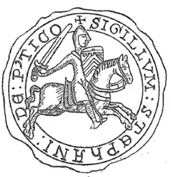 His father and older brother, Geoffrey III, joined the Third Crusade in 1189.[5] During their absence, Stephen shared the administration of the county with the seneschal Warin of Lonray.[6] After Geoffrey's return in 1192 or 1193, Stephen accompanied him to England.[4] It has sometimes been thought that Stephen and Geoffrey divided the Perche between themselves, but this is based on a misreading of a document of 1202.[7]