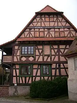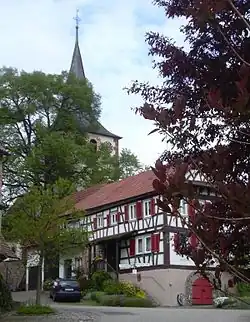 The former Sternenfels castle was probably founded at the start of the 11th century by the von Sternenfels family.[9] In 1232, Sternenfels community was mentioned in a deed the first time, since the community has been destroyed and resettled several times, e.g. in the Thirty Years' War, it did not develop into a bigger settlement.[9] However the peculiar site and a vibrant community life make Sternenfels till today an outstanding municipality. During the 14th century, Sternenfels became part of Württemberg. The Thirty Years' War left the village in shambles. Immigrants from Switzerland repopulated the area and 'Schweitzer' is still an important local family name.[9] Near the end of the 17th century, some of the Eppingen Line fortifications were built around and integrated Sternenfels.[9] These fortifications are still visible. The Protestant parish church in Sternenfels was built in the 18th century, the Diefenbach church 1621 according plans of Heinrich Schickhardt.[9]