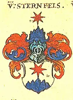 Sternenfels was the main site of the Sternenfels noble family.[10][11] Derived from high German nobility[12] they were related with the Herren von Kürnbach and mentioned as early as the 12th century. A Cunradus liber de Sterrenvils [13] took over the realm of Kürnbach as well. 1252 two sons of Cunradus, Cunradus und Wernherus nobiles de Sternvels joined the fatal last voyage of Conradin[14] to Italy.