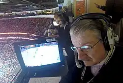 In addition to soccer matches, Cangialosi was also the play-by-play announcer for the New Jersey Devils hockey team where he did calls for the team from 2011 to 2022. Cangialosi replaced Mike "Doc" Emrick as the television voice of the Devils when Emrick stepped down after 21 seasons in 2011.[1][2] He served with color analyst and former NHL defenseman Ken Daneyko after working for three seasons with former NHL goaltender Chico Resch. Prior to this, Cangialosi served as the backup play-by-play announcer to Emrick and the primary studio host for pre/post and intermission studio shows. He has also had other various jobs in television and radio including a three-year run as a sports talk-show host on ESPN radio in New York City. Steve Cangialosi worked on his first Olympic Games at the London 2012 event, broadcasting several soccer matches.