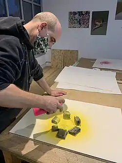 In 2009 he moved headquarters from Charing Cross Road into a five-story Georgian townhouse on Rathbone Place, near Oxford Street, with the first exhibition at the new Lazarides Rathbone being of the Portuguese graffiti artist Vhils, which was also the artist's debut UK show.[9] Lazarides Rathbone formed the flagship Lazarides space with Lazarides Editions creating prints in a separate site (situated in Greenwich). In 2016 Lazarides opened Banksy Print Gallery[10] in the Mondrian Hotel on the South Bank. The space centered around Lazarides' time with Banksy and also sold secondary-market Banksy prints. In early 2018 Lazarides moved the space to Mayfair.[11]